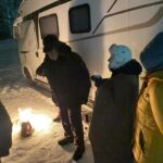 Den Rosenmontag verbringen wir am Nordpolarkreis in Rovaniemi. Wir können den Tag mit viel Ruhe beginnen. Am Vormittag ist Freizeit angesagt. Am Nachmittag erkunden wir die Umgebung unseres Camps mit dem Snowmobil. Zuerst geht es aber ans „Anhosen“. Nach einer kurzen Einweisung besteigen wir unsere Snowmobile. Dann geht die wilde Tour los. Wir erfahren eine tolle neue Anforderung, Fahrzeuge zu beherrschen, auf einer Buckelpiste, mit jeder Menge von Anforderungen gymnastischer Beweglichkeit an Fahrer und Sozius. Unsere außergewöhnliche Fähigkeit, ein rasantes Tempo mitzufahren, lobte unser Guide aus Österreich. Wir konnten in der gebuchten Zeit eine längere Strecke fahren als üblich. Das forderte uns nochmals an steilen Ab- und Auffahrten. Am Abend verlangte der Rosenmontag seinen Tribut. Wir kommen zwar alle nicht aus einer Karnevalshochburg, aber mit Glühwein und der Musik von Höhner, Black Fööss etc. lässt es sich auch bei -7 C° gut feiern und schunkeln.
