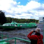 Es war gesteen eine gute Entscheidung der Reiseleiter, den Ausflug auf die Kishi-Insel auf heute zu verschieben: Das Wetter meinte es gut mit uns und ließ die Sonne reichlich strahlen. Somit kamen wir in den Vollgenuss dieser einmaligen Kircheninsel, auf der noch etwa 40 Menschen ganzjährig leben. Das Tragflügelboot fährt von der Promenade in Petrozadwosk nur wenige Minuten zu Fuß von unserem Stellplatz ab und war schon für sich ein echt russisches Erlebnis. Wir alle waren wieder einmal hochzufrieden!