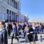 Den Königspalast können wir nur von außen besichtigen. Unzählige Menschen tummeln sich auf dem Platz und heute scheinen Schulklassen einen Ausflug zu machen. Wie eine Schar zwitschender Spatzen muten sie an, die vielen Kinder in ihren adretten Schuluniformen!