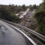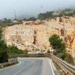 Kurz nach Orosei führt die Straße mitten durch einen gewaltigen Marmorsteinbruch. Hier werden seit etwa 1950 riesige Marmor- und Granitblöcke aus dem Fels gesägt. Das qualitativ hochwertige Gestein wird weltweit exportiert. Bei einem kurzen Stopp können wir einen Blick in den riesigen Abbau-Krater werfen. Allerdings stehen heute die Maschinen still – es ist Sonntag.