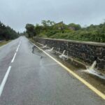 Für die Natur ist der Regen natürlich gut. Die sonst obligatorischen Badestopps an den Stränden finden heute nicht statt. Die sonst überfüllten Parkplätze sind heute leer bzw. überschwemmt, denn das Meer ist sehr aufgewühlt mit hohen Wellen.