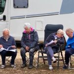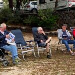 Am Abend wird das Wetter etwas versöhnlicher, sodass wir unsere Besprechung im Freien abhalten können, bis uns gegen 9 Uhr der einsetzende Nieselregen in die Wohnmobile zwingt.