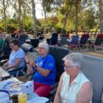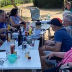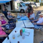 Heute gönnen wir uns einen Ruhetag am Meer. Wir sind jetzt schon über eine Woche unterwegs. Einige putzen ihr Wohnmobil oder sind mit Wäschewaschen beschäftigt, andere machen einen Ausflug mit dem Fahrrad. Wir genießen die Sonne, den feinsandigen Strand und das glasklare Meer, für das Sardinien berühmt ist. Wir können die Seele richtig baumeln lassen. Am Meer haben wir einen weiten Blick vom Cap Ferrato im Norden bis zum Cap Carbonara im Süden. Gegen 15:30 Uhr setzt geschäftiges Treiben ein. Wir veranstalten eine Campertafel. Tisch und Stühle werden zusammengestellt, Grills angeheizt und Salate und Getränke gebracht. Wir genießen die vielen leckeren Sachen und lassen es uns so richtig gut gehen.