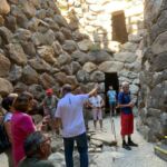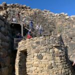 Nach einer ruhigen und angenehmen Nacht brechen wir heute Morgen bei strahlendem Sonnenschein, kurz nach 9 Uhr auf und fahren mit unseren Wohnmobilen zur circa 10 km entfernten Nuraghen-Festung Su Nuraxi. Es ist der größte und am besten erhaltene Nuraghenkomplex Sardiniens. Die Anlage wurde zufällig 1950 entdeckt. Der Ursprung wird auf ca. 1.500 v. Chr. datiert. Über enge und steile Steinstufen klettern wir ins Innere der Anlage. Unser Fremdenführer erklärt uns deren Funktionsweise und die damalige Lebensweise ihrer Bewohner.