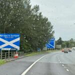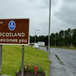 Nach einem reichhaltigen Frühstück auf der Fähre verlassen wir pünktlich um 8 Uhr britischer Zeit die Pride of Rotterdam. Eine letzte Kontrolle unserer Pässe – Großbritannien gehört nicht mehr zur EU – und wir werden in den Linksverkehr entlassen. Unser Ziel ist die schottische Kleinstadt Gretna. Wir haben ca. 300 km Gelegenheit, uns an eine neue Straßennutzung zu gewöhnen. Das gelingt allen ausgezeichnet, Gott sei Dank ohne harte Kontakte mit anderen Verkehrsteilnehmern. Kurz vor dem Ende unseres zweiten Fahrtages passieren wir die schottische Ecke und sind in Schottland. Im Camp ist die gemeinsame Freude groß, dass alle gut angekommen sind und das Kuga-Navi seine erste Bewährungsprobe bestanden hat. Vor der abendlichen Teilnehmerberatung, auf der wir den nächsten Fahrtag besprechen wollen, gibt es jedoch erst mal eines der schottischen Nationalgerichte – Fish&Chips. Zur Begrüßung auf schottischem Boden stoßen wir dazu mit einem Glas Sekt an. Die Essensportionen sind so reichhaltig und schmackhaft, dass alle froh sind, dass anschließend nur ein Tag besprochen werden muss. Am Nachmittag hatte es zwar aufgehört zu regnen, aber wir haben uns trotzdem sicherheitshalber im Gemeinschaftsraum des Camps versammelt. Das gibt die Gelegenheit, nach der Beratung noch zusammenzusitzen und schon mal einen Whisky zu probieren.
