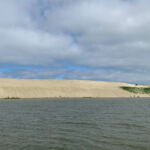 Die größte Attraktion ist die sog. Große Düne, die wir erst sehen, nachdem wir mit dem Boot an der kleineren Parnidis-Düne vorbeigefahren sind. Sie ist mit ca. 50 m Höhe die zweitgrößte Wanderdüne Europas. Mit dem Ausflugsschiff fahren wir an der Küste entlang und können die riesige Düne von der Meeresseite aus bestaunen. Kurz vor der russischen Grenze kehren wir wieder um. Unser Kapitän erklärt uns die Besonderheit im Haff: Flora und Fauna und jahreszeitlich bedingte Veränderungen.
