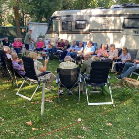Im Laufe des Nachmittags erreichen alle den Campingplatz. Heute Nachmittag hatten wir einen Sonne-Wolken-Mix und so konnten wir unsere tägliche Besprechung bei noch angenehmen 18 Grad im Freien durchführen.