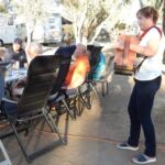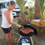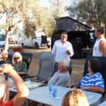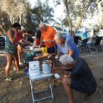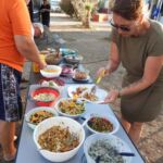 Der Ruhetag bietet sich für unsere erste Campertafel am Abend an. Fleißige Hände stellen die lange Tafel zusammen.