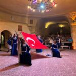 Heute gilt es, das Taurusgebirge zu überwinden. Wir werden dazu einen Pass in 1.720 m Höhe nutzen. Doch vorerst können wir einen Abstecher in den Himmel oder wer möchte, auch in die Hölle unternehmen. Diesen Einsturzdolinen kann man über viele Treppen auf den Grund gehen. In mehr als 100 m Tiefe findet man dann eine sehenswerte Mikrowelt. Durch die kilikische Pforte kommen wir in Zentralanatolien in das Land der schönen Pferde. Die Besonderheit von Kappadokien erfahren wir schon kurz vor der Anfahrt zu unserem Camp. Die im Ergebnis von Vulkanausbrüchen entstandenen Tuffsteine boten Menschen die Möglichkeit, unterirdische Städte anzulegen. In Derinkuyu können wir in eine davon in die Tiefe steigen und in engen und niedrigen Gängen „umherwandeln“. Unser Camp bietet uns dann ebenfalls einen traumhaften Ausblick auf die Täler mit ihren Feenkaminen. Später bring uns ein Bus zu einem türkischen Folkloreabend. Bei einem traditionellen türkischen Dinner erleben wir interessante Tanzdarbietungen, in die auch einige unserer Teilnehmer einbezogen werden. Nach dem langen Fahrtag und der langen Nacht hat kurz vor Mitternacht wohl keiner Probleme, in den Tiefschlaf zu fallen.