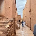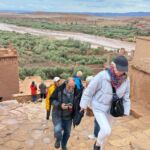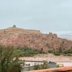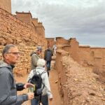 In Quarzazate, einer Stadt mit 70.000 Einwohnern, können wir noch unsere Vorräte auffüllen, dann erreichen wir unseren Campingplatz. Die Besprechung findet heute etwas früher im Restaurant des Camps statt, da wir um 16:00 Uhr noch einen Ausflug vor uns haben. Leider lässt uns das Wetter etwas im Stich, und der Anfang der Tour ist verregnet. Taxen warten auf uns und wir werden zur alten Speicherstadt Ait-Ben-Haddou gefahren. Unser marokkanischer Guide Zaid erklärt uns vieles über die Entstehung und Bedeutung.