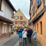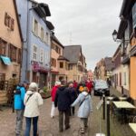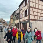 Pünktlich zum Sonntag, dem Tag unserer Anreise, schlug das Wetter von Sonnenschein und 25 Grad auf Wolken verhangen und 12 Grad. Wir begrüßten uns deshalb im Versammlungsräumchen des Campingplatzes bei Crémant de Loire und Plätzchen von der Confiserie in Turckheim. Kennenlernen, Regularien der Reise und Einsatz der Navigationsgeräte war angesagt. Gegen19 Uhr spazierten wir gemeinsam zum leckeren 3-gängigen Begrüßungsessen mit Elsässer Spezialitäten. Beschwingt ging die Truppe wieder zurück zu ihren Wohnmobilen.