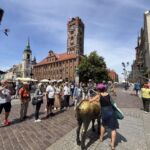 Heute Vormittag geht es mit Alexandra, unserer Stadtführerin, in die Altstadt von Torun. Torun ist vor allem bekannt als Geburtsstadt von Nikolaus Kopernikus und für seine Lebkuchen. Wir laufen über die Weichsel und erreichen nach anderthalb Kilometern die fast vollständig erhaltene Altstadt. Seit 1997 zählt Torun nicht zu Unrecht zum UNESCO-Weltkulturerbe. Alexandra bringt uns ihre Stadt und deren Geschichte auf sehr unterhaltsame Art näher. Beim Besuch der Johanneskirche, in der schon Kopernikus getauft wurde, gelingt es der Reiseleitung, ihr eine Gesangseinlage abzuringen. Unsere Führung endet am Marktplatz mit dem imposanten Rathaus, natürlich wird auch noch der goldene Esel berührt, in der Hoffnung, er möge viele Taler bescheren. Bevor jeder wieder zum Campingplatz zurückgeht, werden kleine Einkäufe erledigt und eines der vielen Restaurants oder Cafés besucht. Am Abend haben wir noch ein kleines Treffen, um den nächsten Fahrtag zu besprechen. Der Abend klingt dann gemütlich auf dem Campingplatz aus.