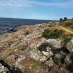 Heute Morgen war es auch um 8:00 Uhr noch erstaunlich ruhig – ob das an der guten Luft zum Schlafen liegt, an dem nicht ganz perfekten Wetter oder am intensiven Vorabend? Nachdem es von Morten auch wieder leckere Brötchen gab, kam so langsam etwas Betriebsamkeit auf und wir konnten wieder gut gelaunt und unternehmungslustig in den Tag starten. Offiziell war heute der Süden und Süd-Osten der Insel Bornholm zu erkunden. Natürlich steht es jedem individuell frei, sich die Tage und die Routen, je nach Vorlieben und Interesse, selbst einzuteilen. Somit sind einige früher und einige etwas später gestartet. Andere haben den Tag grundsätzlich gemütlich angehen lassen. Auch kann man gut vom Campingplatz aus den nahe gelegenen und sehr feinsandigen Strand aufzusuchen und spazieren gehen. Auch die Erkundung der näheren Umgebung mit dem Fahrrad hat seinen Charme.