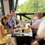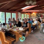 Neun Uhr starten wir mit Kristoph, unserem heutigen Busfahrer, nach Swieta Lipka, einem bedeutenden Marienwallfahrtsort. Nach kurzer Fahrt kommen wir an der Barockkirche „Heiligelinde“ an. Sie ist prachtvoll ausgestattet, aber ein besonderes Highlight ist ihre prunkvolle Orgel mit 2.640 Pfeifen, 41 Registern und beweglichen Figuren. Dort hören wir ein beeindruckendes Orgelkonzert. Im Anschluss fahren wir durch die Johannesburger Heide, mit 1.000 Quadratkilometern das größte Waldgebiet Polens, zum Flüsschen Krutynia. Unterwegs machen wir noch einen kurzen Stopp am Geburtshaus von Ernst Wiechert. In Krutyn bekommen wir ein sehr schmackhaftes Mittagessen serviert. Gestärkt besteigen wir kleine Boote und machen eine Stakenfahrt auf der Krutynia. Danach fahren wir mit unserem Bus zum Kloster der Altgläubigen nach Eckersdorf. Schon während der Fahrt erfahren wir von Marjellchen viel über ihr Leben und ihren Glauben. Nach einer kurzen Führung durch das kleine Museum setzen wir unsere Fahrt fort und erreichen bald Mikolajki, das touristische Zentrum der Region. Hier gehen wir gemeinsam zum Marktplatz und dann hat jeder noch Zeit für einen Kaffee oder kleine Besorgungen. Zurück am Campingplatz treffen wir uns wieder zum Abendessen. Magda hat für uns noch einmal gegrillt. Ulrich spendiert zwei Fässchen Bier und Joachim drei Flaschen Wein. So ist auch für ausreichend Getränke gesorgt. Gemeinsam haben wir wieder einen schönen Abend am See.