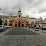 Ein schönes Gebäude, das Rathaus in Melnik. Von der Schlossterrasse aus kann man sehen, wo die Moldau in die Elbe fließt.