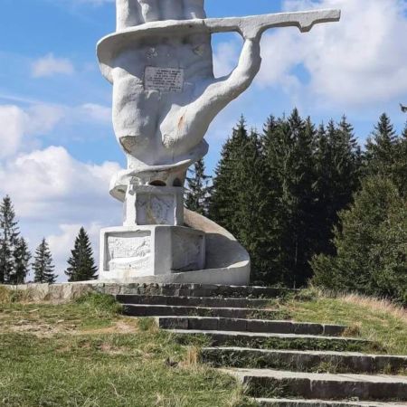 Mitten in den Karpaten passieren wir den Bad- und Luftkurort Vatra Dornei, was übersetzt heißt Dorinas Herz. Einige alte Gebäude erinnern noch vage daran, als die vornehme Gesellschaft der Habsburger Monarchie bei den hiesigen Mineralwasserquellen zur Kur ging. Wir zweigen auf eine kleine Gebirgsstraße ab und fahren in Serpentinen zum 1.109 m hohen Ciumarna-Pass. Oben sehen wir eine meterhohe Skulptur in Form einer Hand. Dieses Denkmal aus den 1950er Jahren ist den Helden des Straßenbaus gewidmet. Und fürwahr: die Straßen hier in Rumänien sind wirklich in sehr gutem Zustand! Da wurde in den letzten Jahren viel geleistet!