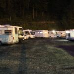 Unser heutiger Platz hat eher Stellplatzcharakter aber mit schönem Sanitärgebäude. Hier in den Bergen wird es schnell frisch und so verbringen wir den Abend in den Wohnmobilen.