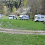 Die Backstube hinter dem Kloster in der wir bisher Brot und köstliches Schmalzgebäck: Mekiza, kauften, ist leider wegen der Renovierung des Backofens noch geschlossen. Wir übernachten am dortigen Campingplatz. Natur pur! Der Betreiber grillt am Nachmittag für uns leckere Steaks, Thüringer Bratwürste, dazu Krautsalat und Kartoffelchips. Mit Wein und einem 5l Fässchen Kulmbacher Bier lassen wir es uns gut gehen.