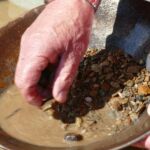 Nun kommen wir zurück in die Zeit, als die Goldsuche hauptsächlich manuell stattfand. Wir versuchen uns im ursprünglichen „Goldpanning“ und stellen fest, das ist eine mühsame Methode reich zu werden.