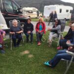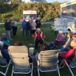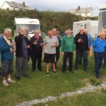 Am Abend unsere Fahrerbesprechung, an die sich eine spontane kleine Party anschloss. Wir hatten einem Briten geholfen seinen schweren Wohnwagen mit defektem Mover auf seinen Platz zu rangieren. Diese eigentliche Selbstverständlichkeit wurde mit reichlich Bier belohnt. Wir hatten einen schönen Abend mit dem Gastgeber.