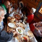 Zu Mittag dürfen wir das von Putin bevorzugte Restaurant Paul erleben, wo statt Wasser Vodka auf dem Tisch steht. Na starovje! Am Camp angekommen geht es sehr beschwingt bis zum Sonnenuntergang gegen 23 Uhr weiter. Auf die Gesundheit – „na starovje“!