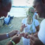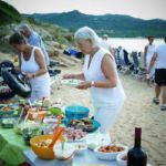 Lasst uns eine Campertafel am Strand machen – wir nennen das „White Night“, war die Idee aus der Gruppe. Zunächst die abendliche Besprechung mit Limoncello, dann schreiten wir zur Tat.