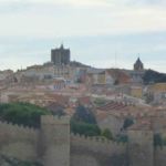 Auf der Strecke nach El Escorial hatten wir ein besonderes Erlebnis, wir besuchten eine Stadt, die es in sich hat: Avila, deren Altstadt, die auf einem steil abfallenden Hügelrücken errichtet wurde, ist noch heute vollständig von einer gewaltigen Stadtmauer, die durchgehend mit Zinnen bestückt ist, umringt. 88, 3 Meter dicke, halbrunde Türme sind In die Mauer eingebaut, jeweils mit einem Abstand von 20 m. Großartig, daher auch die Ernennung zum Weltkulturerbe.