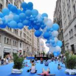 Aber auch andere Architekten haben schöne Gebäude geschaffen. Man kann tolle Fassaden bewundern, Innenhöfe und die Front einer Musikhalle. In der ganzen Stadt finden aus Anlass eines Festes viele Veranstaltungen statt, auf Plätzen und mitten auf den Straßen, gekennzeichnet durch blaue Luftballons, so auch diese Yogaübungen. Auch in der großen Markthalle an der Rambla tobt das Leben. Alles, was das Herz begehrt, kann man hier kaufen.