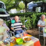 Am Abend haben wir Glück mit dem Wetter. Es kann gegrillt werden! Am Campingplatz ist ein Grill, Holzkohle wird besorgt, das Feuer entfacht, der Grillmeister steht in dichtem Qualm und bereitet das Mahl! Allerdings müssen auch Fliegenklatschen zum Einsatz kommen. Es gibt fürchterlich viele dieser Plagegeister, die mit uns essen wollen.
