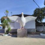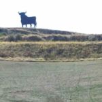 Die Stierfigur der Firma Osborne blickt häufig vom Hügel auf uns herab. Eigentlich sollten sie weg, manche meinten, sie verschandelten die Natur. Aber sie blieben, und ich finde, sie passen gut in die spanische Landschaft! Am Rande der Straße blühen viele Oleanderbüsche.