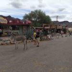 Weitet geht es auf der legendären Route über die Berge. Hier wird die 66 immer schmaler, doch am Rande gibt es immer wieder Tolles zu entdecken, so wie die einstige Tankstelle. Wir erreichen Oatman und sind entzückt, was man hier aus diesem einst bereits verlassenen Dorf gemacht hat. Die alten Häuser, Geschäfte und Salons sind zu neuem Leben erwacht und beherbergen kleine Geschäfte und Souvenirs, die zur Route 66 passen. Frei laufende, wilde Esel geben dem Dorf noch einen eigenen Charme. Mittags werden wir Zeuge einer Schießerei, gut, daß der Tote irgendwann wieder aufstand.