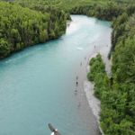 Bei Cooper Landing wird das Wetter deutlich besser, wir halten am Kenai River zu einem Fotostopp. Rafting-Boote, Angler-Boote, Angler stehen im Wasser und schließlich sehen wir noch einen Weißkopf-Seeadler.