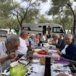 Am Abend versammelten sich alle zur Campertafel. Die griechischen Bauernbratwürste wurden als Alternative zur heimischen Bratwurst von allen gelobt. Mit Salaten, Brot, interessanten Gesprächen und natürlich einigen Ouzos ging der Abend rasend schnell vorüber. Morgen ist – Gott sei dank – Ruhetag.