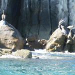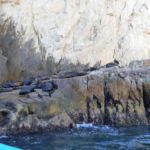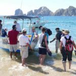 Am Ruhetag organisieren wir einen Bootsausflug am Cabo San Lucas zum Arco, einem natürlichen Felsbogen am südlichsten Zipfel von Baja California. Wir werden von Pelikanen und Robben erwartet. Im glasklaren Wasser ist die bunte Fischwelt schön zu beobachten und bald kommen wir zum „Arco del Cabo San Lucas“.Am Cabo auf der Buchtseite steigen wir aus und können zur breiten Sandbucht auf der Pazifikseite gehen. Der Brandungsunterschied zwischen Bucht und Pazifik ist deutlich zu erkennen.