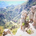 Wir kommen zu verschiedenen Aussichtspunkten und zum Nationalpark „Barranca del Cobre“. Hier treffen drei der größten Canyons aufeinander – Urique, Cobre und Tararecua. Ganz mutige trauen sich auf den Balancierstein, der wie eine Schaukel direkt am Abgrund genutzt wird. Die Menschen hier aus dem Ort haben entweder Fahrzeuge für Touristenausflüge, arbeiten in Hotels oder im Nationalpark. Raramuri verkaufen an ihren Ständen oder aus der Hand ihre Handwerksarbeiten, meistens Frauen und Kinder. Nach einer ausgiebigen Besichtigung geht es zurück zu unseren Fahrzeugen.