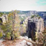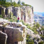 Wir kommen zu verschiedenen Aussichtspunkten und zum Nationalpark „Barranca del Cobre“. Hier treffen drei der größten Canyons aufeinander – Urique, Cobre und Tararecua. Ganz mutige trauen sich auf den Balancierstein, der wie eine Schaukel direkt am Abgrund genutzt wird. Die Menschen hier aus dem Ort haben entweder Fahrzeuge für Touristenausflüge, arbeiten in Hotels oder im Nationalpark. Raramuri verkaufen an ihren Ständen oder aus der Hand ihre Handwerksarbeiten, meistens Frauen und Kinder. Nach einer ausgiebigen Besichtigung geht es zurück zu unseren Fahrzeugen.