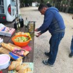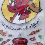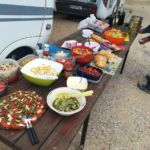 Am Nachmittag findet unsere Campertafel statt. Unser Ingo hat für alle Rostbratwurst aus Thüringen im Gepäck. Mehrere Fässchen Bier, diverse selbst gemachte Salate, und vor allem gute Stimmung machen den Nachmittag und Abend zu einem schönen Miteinander. Wir lernen uns alle besser kennen.