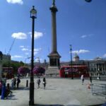 Nun sehen wir uns noch ein paar Dinge in der Stadt an, zum letzten Mal auf dieser Reise! Trafalgar Square mit Admiral Wellington hoch oben auf der Säule und dem Wahnsinns-Verkehr in der Stadt.