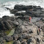 Einige aus unserer Gruppe wagen den Abstieg und machen eine Wanderung durch die Klippen ans Meer.