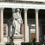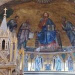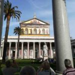 Am Nachmittag geht es nach einer kleinen Stärkung in die Katakomben und anschließend zu Sankt Paul vor den Mauern – eine der Papstbasiliken von Rom. Sie gehört, obwohl außerhalb des Vatikans gelgen, zum Heiligen Stuhl und ist eine der sieben Pilgerkirchen von Rom. In der Galerie wird der amtierende Papst angestrahlt.