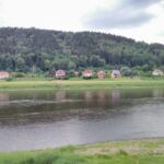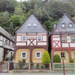 Auf dem Weg zu unserem Ziel können wir einige „Umgebindehäuser“ bewundern In diesen Häusern wurden die Kammern, in denen die Webstühle für dieses Handwerk standen, mit Holzbalken umbaut, damit die Vibrationen der Geräte durch Übertragung auf die Häuser keinen Schaden anrichten konnten. Von dort hat man einen wunderbaren Ausblick auf die Elbe.