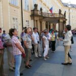 Der zweite Besichtigungstag führte uns in die Prager Burg, den Hradschin. In die Kathedrale konnten wir nicht hinein: die Schornsteinfegerzunft feierte darin eine Messe. Aber von aussen ist sie auch den Anblick wert. Auch der Schlosshof, derzeit sehr streng bewacht in Zeiten der Terroranschläge, ist ein prächtiges Terrain. Außerhalb des Schlosses sieht man ebenfalls sehr schöne Gebäude, wie das Palais der adeligen Familie Schwarzenberger. In Prag wurde eben durch Bomben nichts zerstört wie beispielsweise in Berlin oder Dresden.