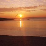 Die Sonne weckt uns und taucht Strand samt Hafen in schönes Morgenlicht.