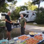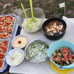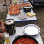 Um 16 Uhr trafen wir uns zur Campertafel, was es alles zum Cevapcici seht ihr auf den Bildern. Olaf, KUGA Chef und Genießer, hätte die Campertafel erfunden – machte die Runde, gutes Essen, Geselligkeit und alles was das Herz begehrt auch in flüssiger Form.