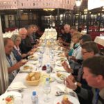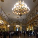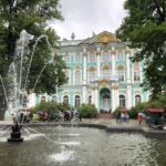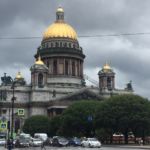 Mit einer halben Stunde Verspätung kommt der Bus. Es geht los. Leider regnet es und wir können nicht überall aussteigen. Dennoch sehen wir die vielen Paläste, Kirchen und Museen der Stadt. Raissa spricht so schnell, dass wir kaum mitkommen, aber es ist auch eine Sehenswürdigkeit neben der anderen. Und sie weiß scheinbar alles! Sehr beeindruckt von dieser Stadt geht’s zum Mittagessen. Ein Menü nach russischer Art, etwas ungewohnt, aber lecker, verzehren wir.