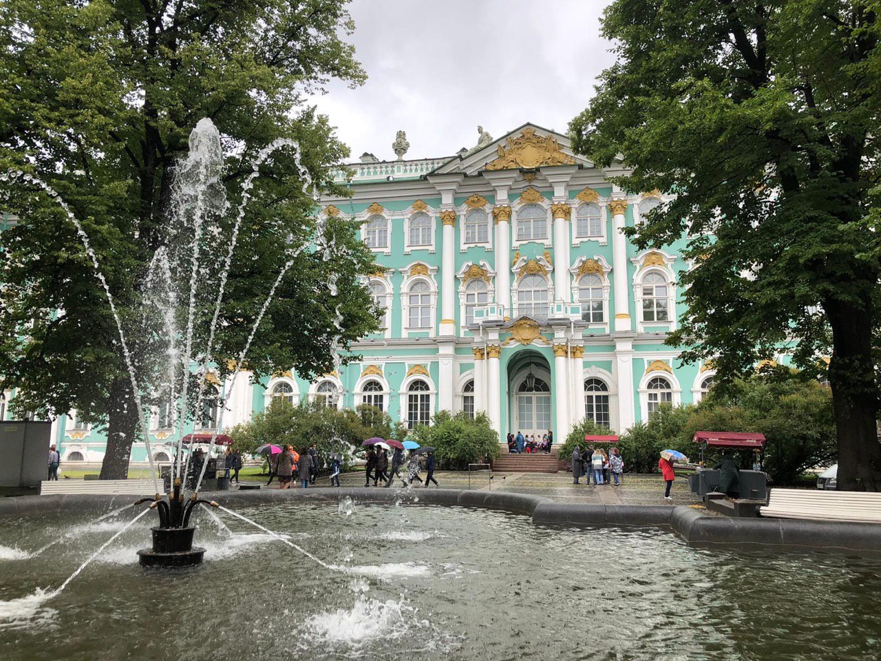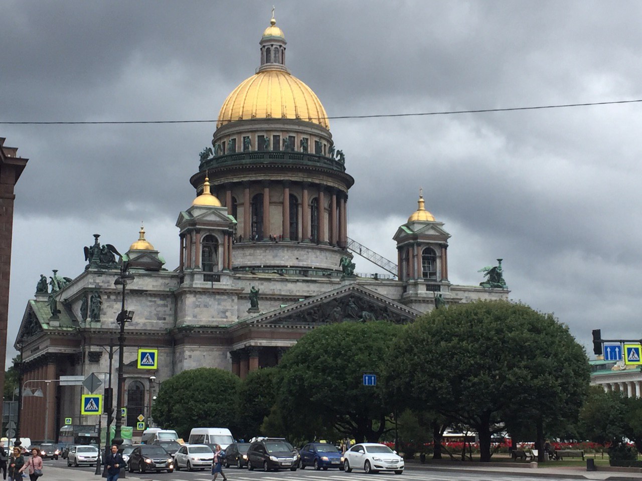 Mit einer halben Stunde Verspätung kommt der Bus. Es geht los. Leider regnet es und wir können nicht überall aussteigen. Dennoch sehen wir die vielen Paläste, Kirchen und Museen der Stadt. Raissa spricht so schnell, dass wir kaum mitkommen, aber es ist auch eine Sehenswürdigkeit neben der anderen. Und sie weiß scheinbar alles! Sehr beeindruckt von dieser Stadt geht’s zum Mittagessen. Ein Menü nach russischer Art, etwas ungewohnt, aber lecker, verzehren wir.