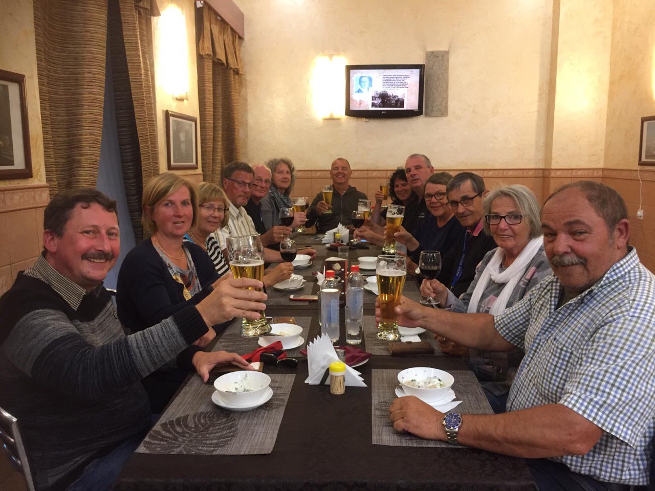 Kurze Pause und dann zum gemeinsamen Abendessen mit typisch russischen Teigtaschen gefüllt mit Hackfleisch, sehr lecker!