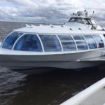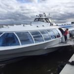 Wir fahren ins Zentrum von St. Petersburg an eine Anlegestelle an der Neva. Von dort geht’s mit einem Tragflügel Boot hinaus und über die große Bucht.