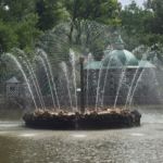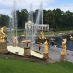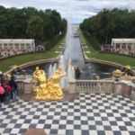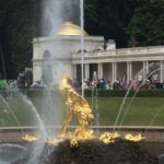 Gepflegte Beete und tausende blühende Blumen begeistern uns. Die vielen Palais erstrahlen in goldenem Glanz und die vielen Wasserkaskaden tanzen zur Musik.