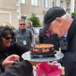 Bevor es heute los geht, haben wir uns erst einmal vor Dieters Wohnmobil verabredet. Er wird mit einem herzlichen Happy Birthday geweckt, wir überreichen ihm kleine Geschenke und lassen ihn hochleben!